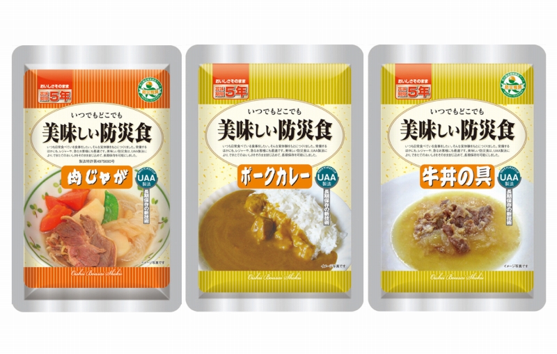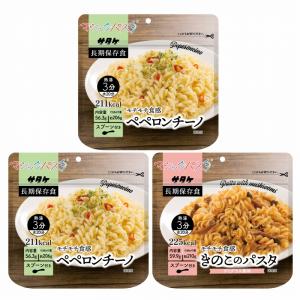 内容 パンの缶詰×3缶(チョコチップ、レーズン、コーヒーナッツ)、マジックパスタ×3袋(ペペロンチーノ、カルボナーラ、きのこ)、アルファ米×3袋(白飯×2、わかめご飯×1)、美味しい防災食×3袋(肉じゃが、ポークカレー、牛丼の具)、保存水(500ml)×3本、食品加熱用パック×1セット、詰替え用加熱材(3個入)×1セット