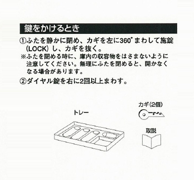 ここは空白です シリンダー錠とダイヤル錠のダブルロックでしっかりと中身を保管し、安全です。