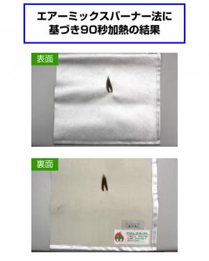 4. ガスバーナーの炎に約90秒間あて続けても、残炎時間20秒以下で自己消化し平均炭化長は8cm以下(45°エアミックスバーナー法)。