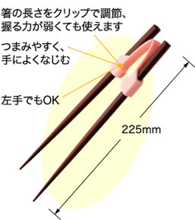 - クリップ付なので、握る力が弱く箸手が上手に使えない方でも簡単に使えます。