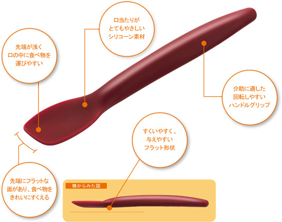 ここは空白です 食べ物がすくいやすく、与えやすい工夫がされたカタチ
