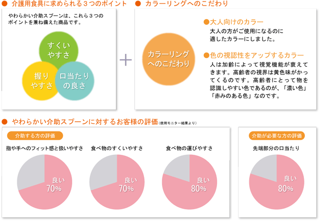 • グリップも、スムーズな食事介助をサポートする、手が回転しやすいカタチです。