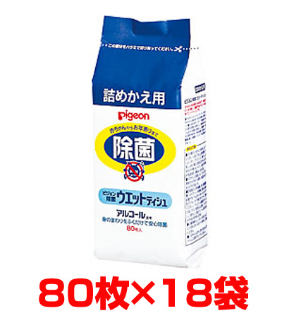 ピジョンタヒラ 除菌ウェットティッシュ詰替え 80枚×18袋 (1440枚入り)
