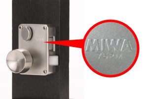 - MIWA 75PMまたはPMKの刻印があること。(ドア側面にある銀色のプレートのマークをお調べください。)