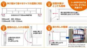 • 伸び縮みで様々なサイズの書庫に対応!
