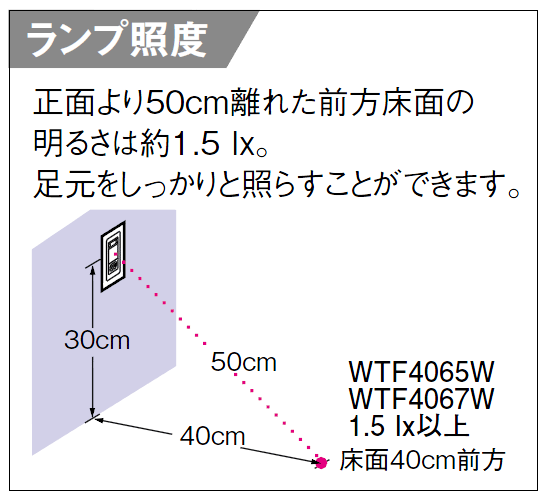 • 従来品(WTF40504W)よりも床面の明るさが20%アップ。