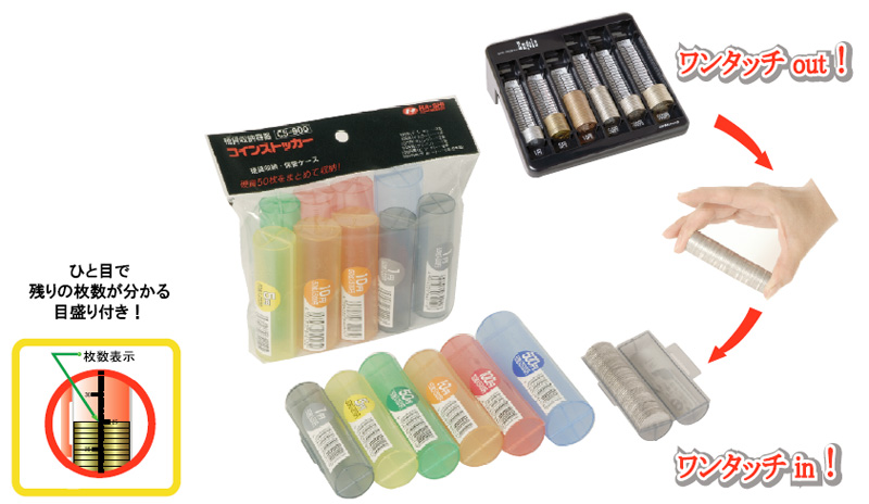 1円〜500円の各硬貨とも50枚ずつ収納・保管可能!