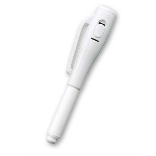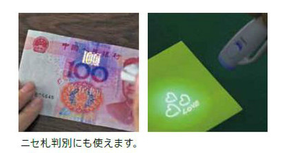 ここは空白です ペンに付いているライトで照らすと文字が浮き上がる。