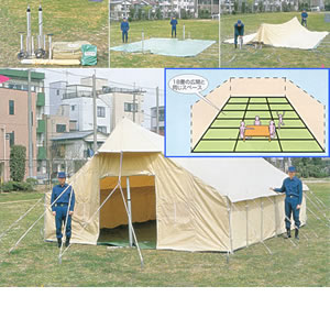 ここは空白です 避難所、救護所、災害対策本部など広い用途に利用できる大型テントです。