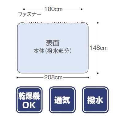 強撥水加工で通気性を維持して、掛け布団の汚れを防ぎます。