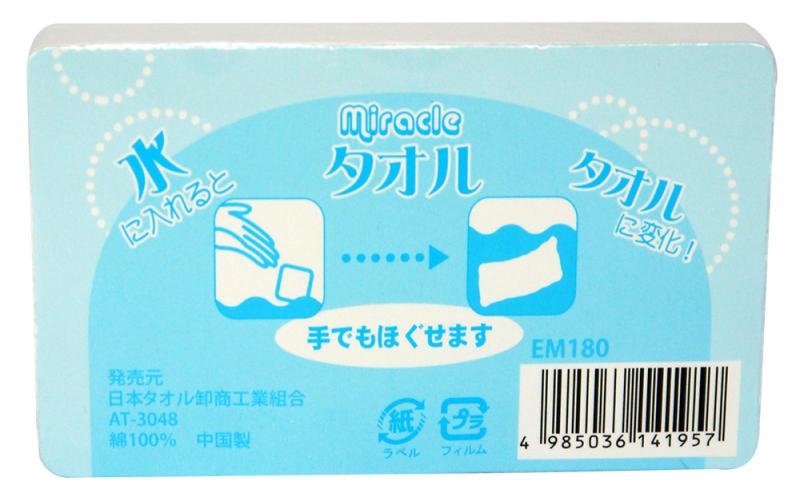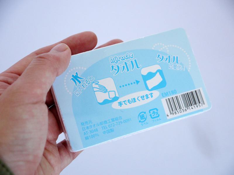 水につけると10〜20秒でタオルに変身!手でもほぐせます。