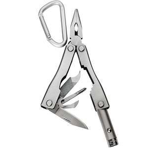 ネイルケア、+ドライバー、缶切、ナイフ、LEDライト、プライヤーがひとつになっています。