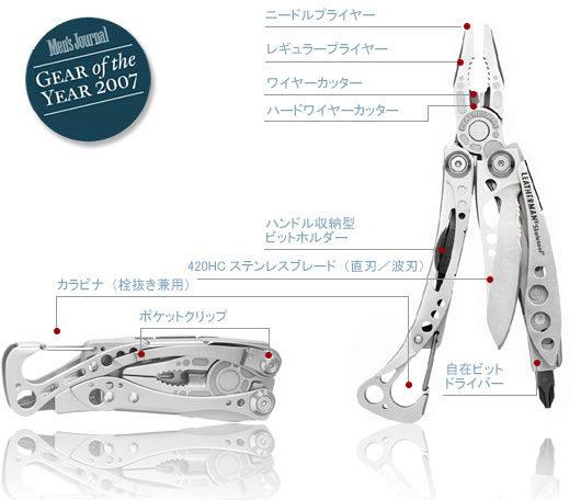 - この新しいSkeletoolCXは、その相反する長所を高次元で融合したレザーマン史上で最軽量のフルサイズのマルチツールです。