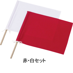 商品名 信号手旗(棒付き) 30×40cm 綿 <赤・白セット>