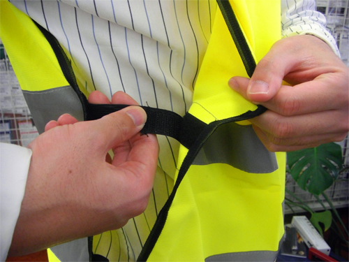 光る反射ベストです。