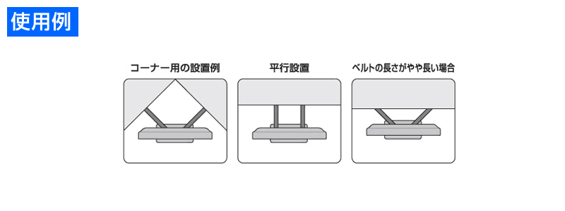 新開発の伸びるベルト(24〜40cmまで伸びて、コーナー設置や弊校設置に関わらず設置できます。)が地震の応力を分散して転倒を防ぎます。