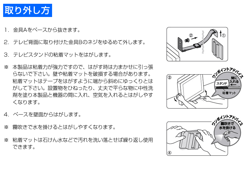 ※2.別途テレビスタンドに粘着マットが必要です