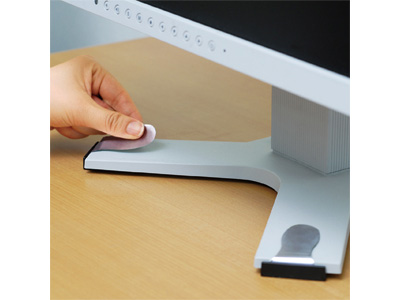 • アクリル系接着剤で、設置面にしっかりと貼り付き、更にフィルムでスタンドを固定しています。