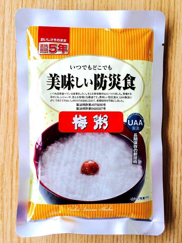 美味しい防災食シリーズより5年保存の梅粥です。