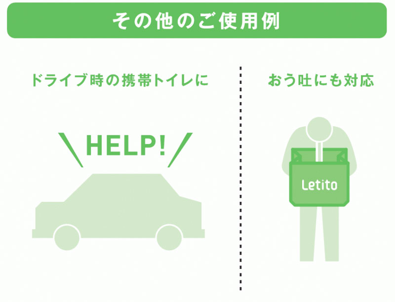 | ・ | レティットは災害時や緊急時の排泄物・汚物などを衛生的に処分ができます。 |