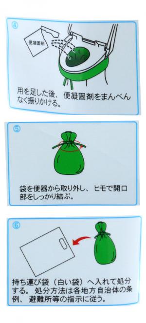 • 便凝固剤1個で大人1回分の便・尿を凝固します。