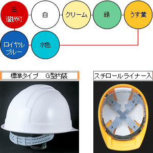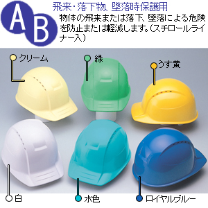 ここは空白です 通気孔つきヘルメット。飛来・落下物+墜落時保護用。標準タイプ。スチロールライナー入り。