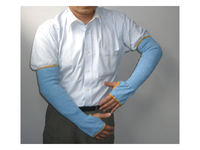- アームプロテクターは、服の上、素肌の上でもフィットするようになっております。アームプロテクターをはめた上に、手袋も容易に装着出来ます。