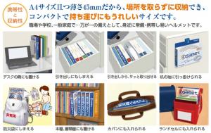 • A4サイズ厚さ45mmの収縮式ヘルメットです。場所を取らずに収納でき、コンパクトで持ち運びしやすいサイズです。