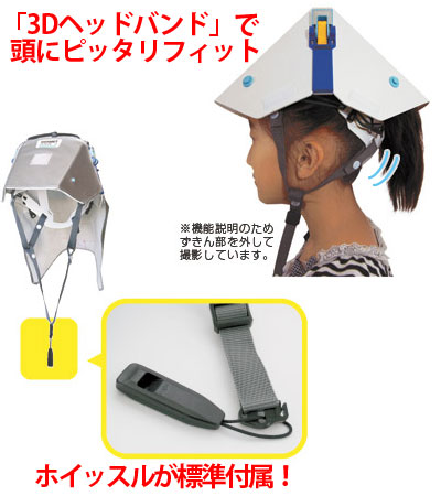あごひもの先端には「ホイッスル」が付属。緊急時に吹くことにより自分の居場所を周囲に知らせることが出来ます。