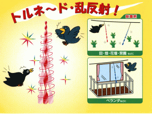 - ロングパワーのトルネード(竜巻)の眩しい光の反射が害鳥を威嚇し警戒心を与えます。