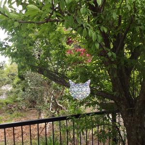 微風でもゆらゆら揺れて光を放ち鳥を威嚇します。