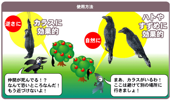 カラスに仲間の死骸だと思わせ、強い恐怖感を与えます。