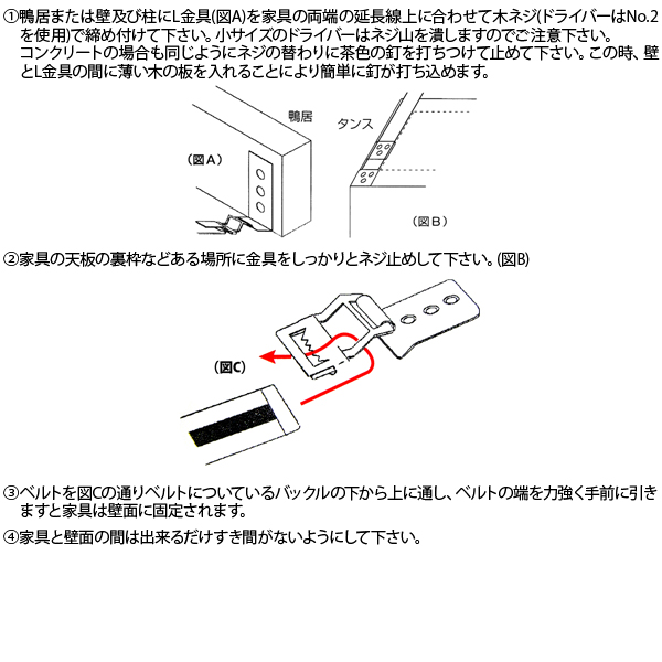 ここは空白です 地震などによる家具の転倒を防ぐベルト式耐震金具です。