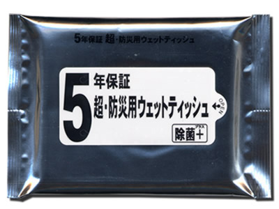 ここは空白です 「5年保証」の防災用のウェットティッシュです。