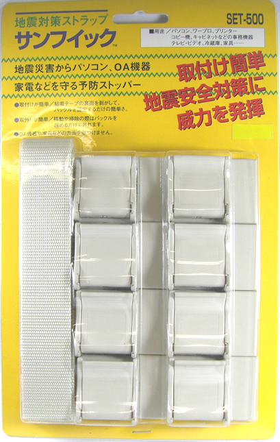 | (1) | 粘着テープの裏面を剥がして、バックルを固定するだけの簡単さ |