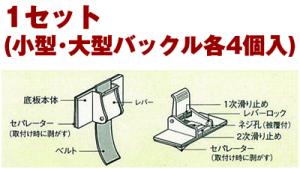 【小型バックル】 4個 (35mm×32mm) 【大型バックル】 4個 (35mm×64mm) 【ベルト300 】 2個 (25mm×300mm) 【アルコールパッド】2個 【予備粘着パッド】4個 |