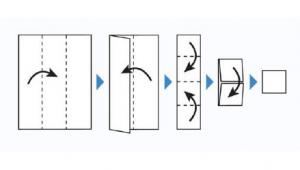 - 1枚のガーゼを内側に折りたたみます。製品1枚がガーゼを12枚重ねたサイズになります。