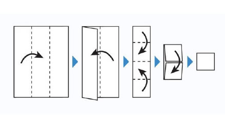 • 1枚のガーゼを内側に折りたたみます。製品1枚がガーゼを12枚重ねたサイズになります。