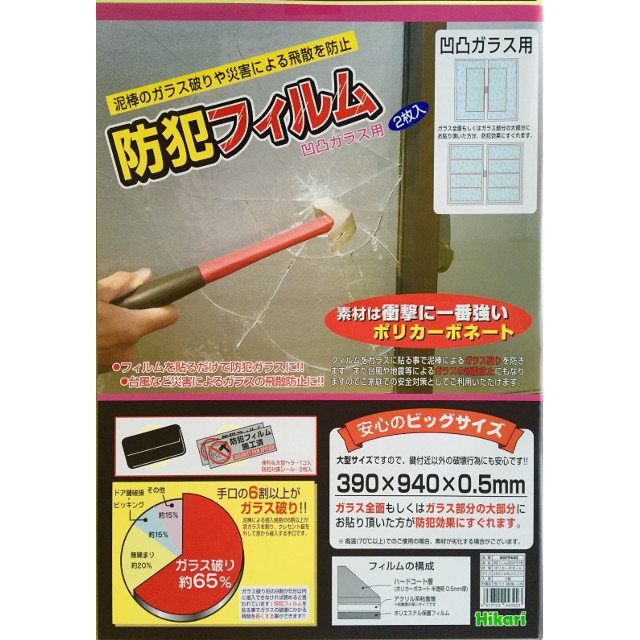 防犯グッズ光 防犯フィルム 凹凸ガラス用(2枚入) 390×940×0.5mm BGF9440