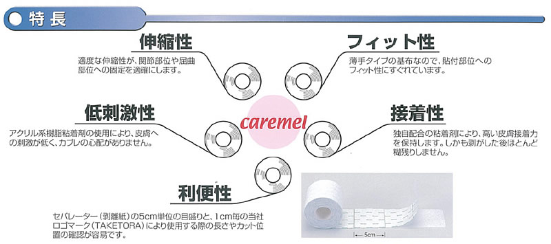 独自配合の粘着剤により、高い皮膚接着力を保持します。しかも剥した後ほとんど糊残りしません。
