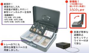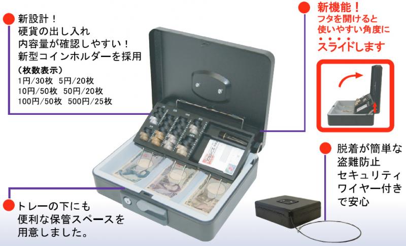 | 収納 | 1円/30枚、5円/20枚、10円/50枚、50円/20枚、100円/50枚、500円/25枚 |