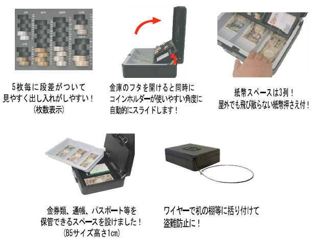 | 硬貨収納部 | 各5枚仕切り |