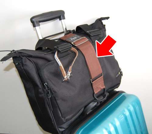 ここは空白です 幅広ベルトと強力ゴムで大切な鞄をガッチリ固定!!置引き対策にも!!