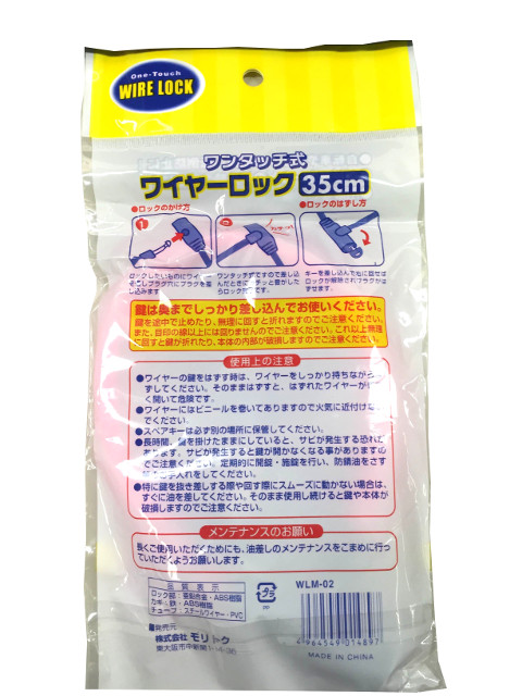 ロック部:亜鉛合金・ABS樹脂 カギ:鉄・ABS樹脂 チューブ:スチールワイヤー・PVC |