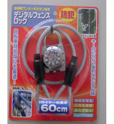 - キーのいらない便利なデジタル錠とワイヤーとのセット。