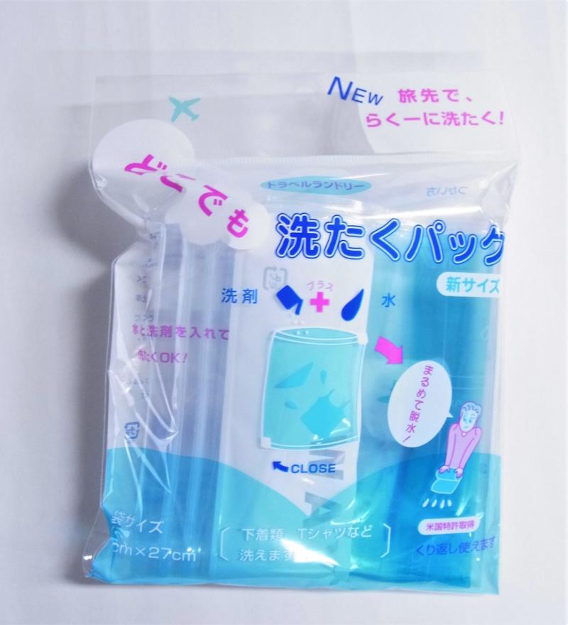 水道水、または清潔な水があれば洗濯できる、携帯洗濯袋です。