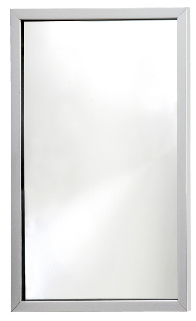 ミラー本体:(鏡)アクリル(枠)アルミ、ビス止め用壁面板:アルミ(焼付塗装) |