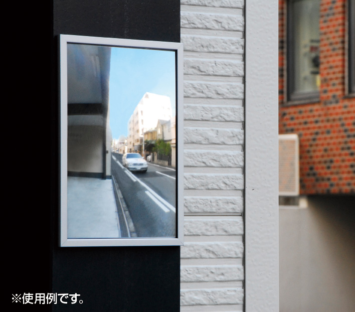 - 有効視野がワイド。(従来の凸ミラーより鮮明度は劣ります。)
