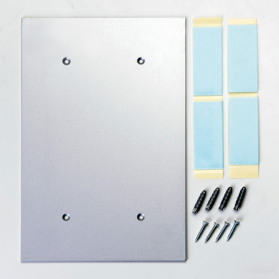粘着テープ(4枚)、ビス止め用壁画板(1枚)、取付用ビス(4ケ)、コンクリート用プラグ(4ケ) |