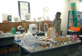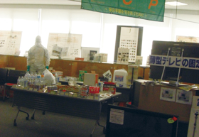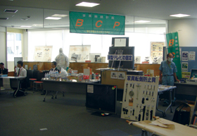 非常食、保存水からリヤカー、担架、簡易トイレ、テントなど企業防災を意識した展示を行いました。